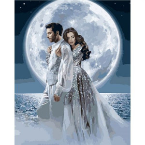 Картина по номерам 'Под лунным сиянием'. Для того, чтобы нарисовать картину, необходимо рисовать по пронумерованным контурам, которые соответствуют цвету краски. В наборе: натуральный холст на подрамнике с галерейной натяжкой, бумажная копия с контурным рисунком картины (на картине нанесена схема контуров изображения с нумерацией), 3 нейлоновые художественные кисти, палитра акриловых красок в контейнерах, крепление. Все необходимые краски уже в комплекте и не требуют смешивания. Размер: 40 х 50 см. Количество цветов: 28. Сложность - ★★★.