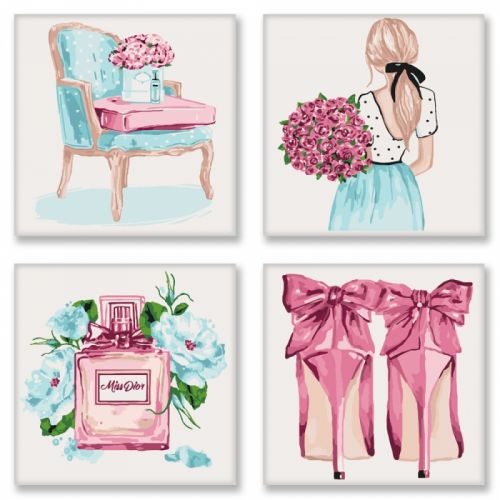 | Комплектация | 4 полотна на деревянных подрамниках, 3 кисточки (широкий, средний и маленький), набор акриловых пронумерованных красок, контрольный лист (изображения, дублирует рисунок на холсте), инструкция |