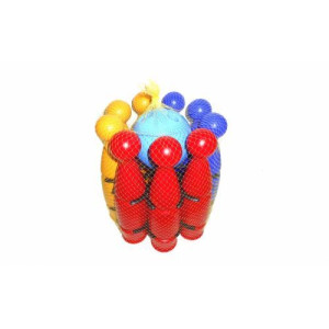 Кегли 'Паутинка-9'. Кегли для боулинга (9 штук), пластиковые. Размер одной - 6 х 6 х 24 см. Диаметр шара - 10 см.