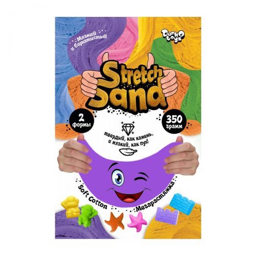 Кинетический песок 'Stretch Sand', 350 г. Такой песок прекрасно держит любую форму, быстро распадается при необходимости, а его строение отличается одновременно пористостью и прочностью. По ощущениям такой песок напоминает сырой морской песок, только он без воды, не прилипает к рукам, не пачкает одежду.