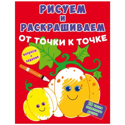 Книга 'Рисуем и раскрашиваем от точки до точки'. Нужно дорисовывать картинки и раскрашивать их в соответствующие цвета, а так же, отгадывать, что изображено на рисунке. 10 страниц.
