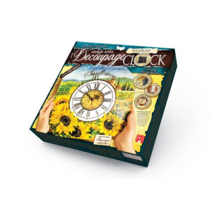 Набор для творчества 'Decoupage Clock'. Создай настенные часы в технике декупаж. Декупа́ж — техника декорирования различных предметов, основанная на присоединении рисунка, картины или орнамента к предмету и далее покрытии полученной композиции лаком ради сохранности, долговечности и особенного визуального эффекта. В наборе: декупажная карта, заготовка для часов, часовой механизм, фактурная губка, акриловая краска, багетная рамка, акриловый лак, клей ПВА, пошаговая инструкция. Готовые часы вставляем в рамку 30 х 30 см и вешаем на стену.