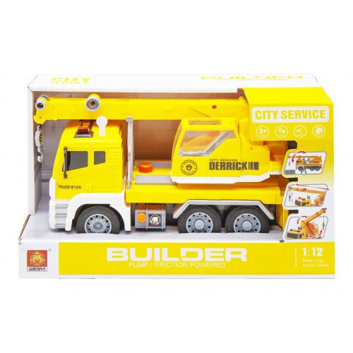Кран с воздушной помпой будет интересным подарком ребёнку. Машина инерционная. Есть световые и звуковые эффекты. Так же, есть кран, который можно накачивать воздухом и тем самым приводя в движение. Есть подвижные детали. Размер машины - 30 х 14 см., диаметр колес - 4,5 см. Выполнена из качественного пластика. Для детей от 3-х лет.