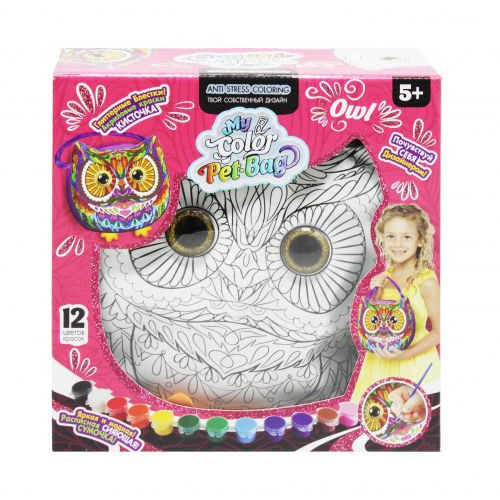 Интересный набор для творчества, который поможет развивать у ребёнка восприятие цвета, креативность, а также является отличным антистрессом. В наборе есть сумочка-питомец, который ребёнок сможет раскрасить так, как ему нравится и украсить. Так же, есть палитра красок на 12 цветов, блесточки, акриловый лак и кисточка. Выполнен набор из качественных и безопасных материалов. Для детей от 5 лет.