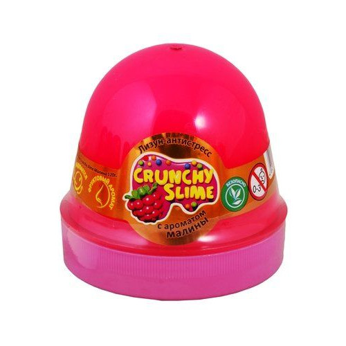 Лизун-антистресс 'Crunchy Slime'. Состоит из вязкого материала, который можно растягивать, сжимать. Может прыгать как настоящий попрыгунчик. Приятный на ощупь. С ароматом малины.