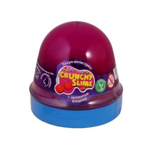 Лизун-антистресс 'Crunchy Slime'. Состоит из вязкого материала, который можно растягивать, сжимать. Может прыгать как настоящий попрыгунчик. Приятный на ощупь. С ароматом вишни.