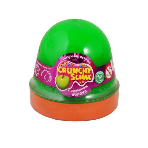 Лизун-антистресс 'Crunchy Slime'. Состоит из вязкого материала, который можно растягивать, сжимать. Может прыгать как настоящий попрыгунчик. Приятный на ощупь. С ароматом яблока.