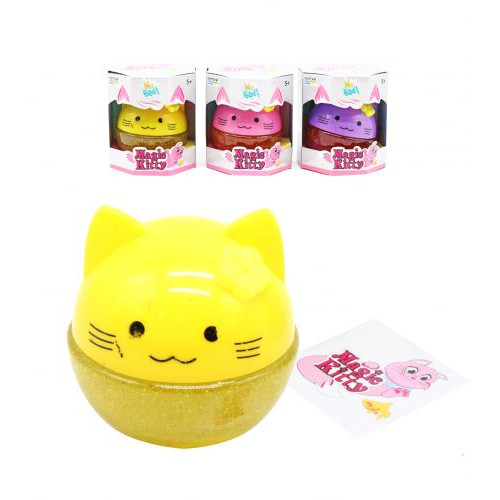 Лизун-антистресс 'Magic Kitty'. Украшен блестками, нежная текстура, очень эластичный. Объем баночки со слаймом - 100 мл. Выполнено из качественного и безопасного материала. Для детей от 5 лет. Разные виды в ассортименте.