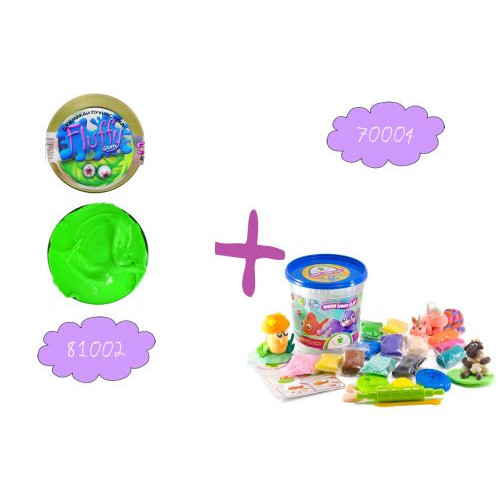 | Комплектация | Флаффи слайм + легкий магический пластилин (10 шт.), тесто для лепки (3 шт.), формочки (3 шт.), скалка, стек, инструкция |