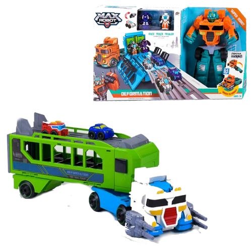 Набор с машинами-трансформерами. В комплекте есть 1 большая машина автовоз (трансформируется в большого робота), 2 машинки (трансформируются в маленьких роботов). Прицеп автовоза может служить дорогой для маленьких машинок. Выполнено из качественного и прочного пластика. Для детей от 3-х лет.