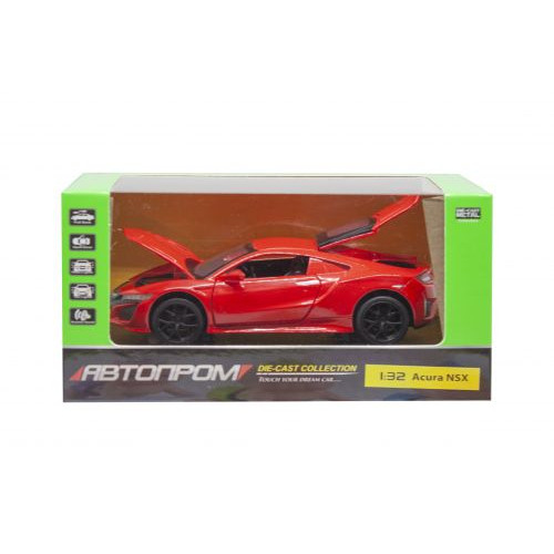 Машина 'Acura NSX' из серии 'Автопром'. Металлическая, инерционная. Открываются двери, багажник и капот. Высокая детализация интерьера и экстерьера. Светятся фары (передние и задние), имеет звуковые эффекты (звуки двигателя, сигнализация, клаксон). Масштаб - 1:32.