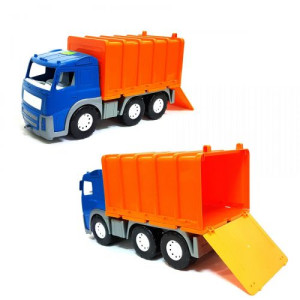 Машинка 'Грузовик Акрос'. В кузовное отделение мусоровоза установлен механизм выгрузки, дверца открывается. Высокая детализация, качественный пластик.