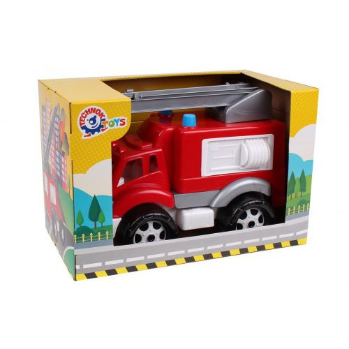 Красная пластиковая пожарная машинка с большими колёсами. Имеет выдвижную лестницу, которая выдвигается до 40 см. Также можно открывать дверцу в багажнике. Машинка очень яркая, с красивым дизайном и подробными элементами. Размер: 32 х 24 х 19 см.