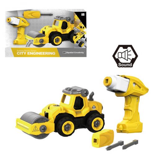 Машинка-конструктор, с дрелью (работает от батареек) и отверткой. Конструктор позволит ребенку почувствовать себя настоящим механиком и с помощью отвертки, собрать и разобрать машину. Машинка со звуковыми эффектами (нужно нажать на бампер).