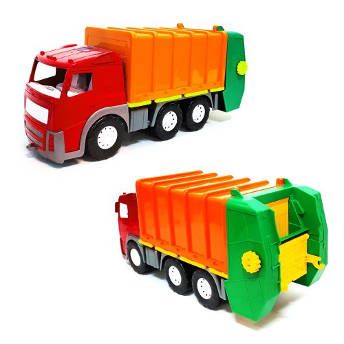 Машинка 'Мусоровоз Акрос'. Автомобиль имеет открывающееся багажное отделение, куда попадают мусорные баки (бак в комплекте). В кузовное отделение мусоровоза установлен механизм выгрузки. Высокая детализация, качественный пластик.
