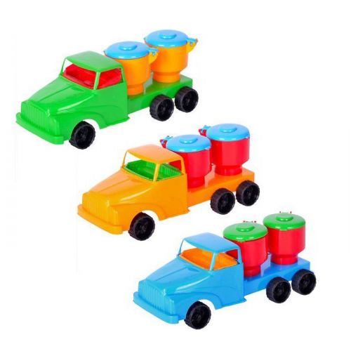 Машинка пластиковая 'Денни'. Маленькая, пластиковая, с 2 бидонами. С откидным кузовом. Разные цвета.