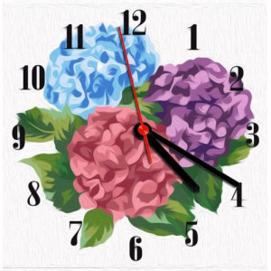 С помощью данного набора можно раскрашивать не просто картину, а настоящие часы. Подобная поделка станет прекрасным подарком или дополнением интерьера. Для того, чтобы нарисовать картину, необходимо рисовать по пронумерованным контурам, которые соответствуют цвету краски. В наборе: часовой механизм со стрелками, ДСП на широком подрамнике (2,5 см.), бумажная дубликат с контурным рисунком картины (на картине нанесена схема контуров изображения с нумерацией), нейлоновые художественные кисти, палитра акриловых красок в контейнерах и удобное крепление. Все необходимые краски уже в комплекте и не требуют смешивания. Размер: 30х30 см.