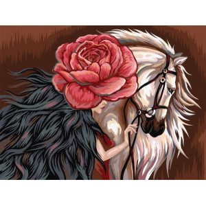 Картина по номерам 'Белая лошадь'. Для того, чтобы нарисовать картину, необходимо рисовать по пронумерованным контурам, которые соответствуют цвету краски. В наборе: натуральный холст на подрамнике с галерейной натяжкой, бумажная дубликат с контурным рисунком картины (на картине нанесена схема контуров изображения с нумерацией), 2 нейлоновые художественные кисти, палитра акриловых красок в контейнерах. Все необходимые краски уже в комплекте и не требуют смешивания. Размер: 30 х 40 см.