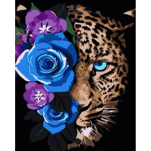 Картина по номерам на черном фоне Леопард в цветах 40х50