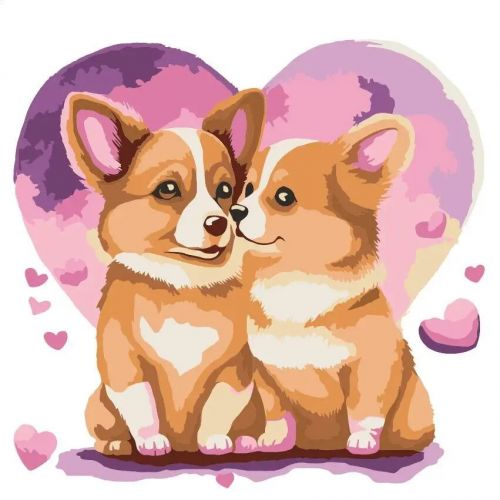 Картина по номерам на ДСП Пара корги 30х30 см ★★
