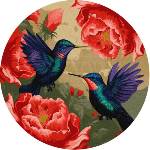 - Натуральный холст на круглом подрамнике с галерейной натяжкой. На картине нанесена схема контуров изображения с нумерацией