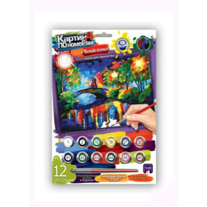 Картина по номерам (297х210 мм). В наборе: 12 акриловых красок (основные цвета + оттенки), кисточка, контурная заготовка 2 шт., инструкция._