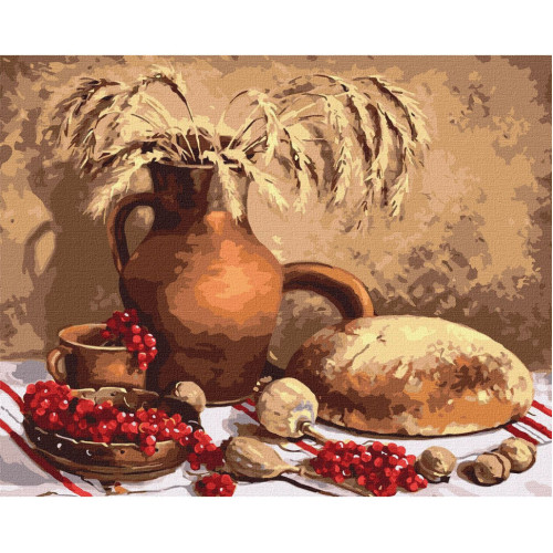 - Натуральный холст на подрамнике с галерейной натяжкой. На картине нанесена схема контуров изображения с нумерацией