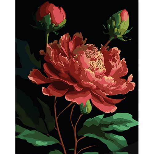 Картина за номерами на чорному фоні Півонії 40х50 см