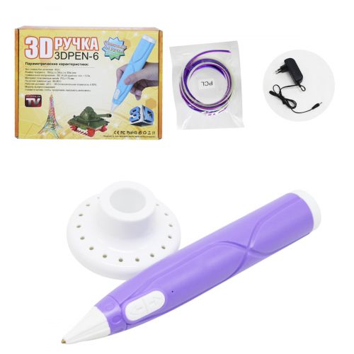 3Д-ручка позволяет рисовать объекты в 3D пространстве; создавать фигуры на бумаге (2D), затем, отделяя бумагу от пластика, получать готовую фигуру, либо одну из деталей фигуры; соединять изделия из пластика между собой. 3D ручка имеет удобный и стильный корпус, который отлично помещается даже в руке у ребенка. Керамический носик делает 3D ручку еще более безопасной и практичной. Рисует пластиком АВS и PLA. В комплекте есть инструкция и три мотка PLA пластика.