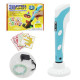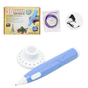 3Д-ручка позволяет рисовать объекты в 3D пространстве; создавать фигуры на бумаге (2D), затем, отделяя бумагу от пластика, получать готовую фигуру, либо одну из деталей фигуры; соединять изделия из пластика между собой. 3D ручка имеет удобный и стильный корпус, который отлично помещается даже в руке у ребенка. Керамический носик делает 3D ручку еще более безопасной и практичной. Рисует пластиком АВS и PLA. В комплекте есть инструкция и три мотка PLA пластика.