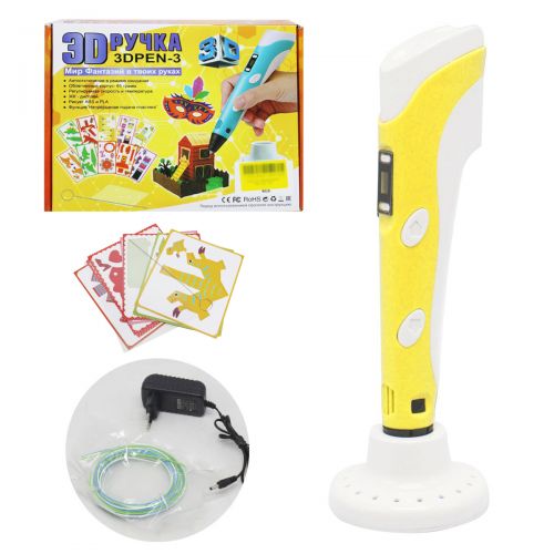 | Комплектация | 3D ручка, адаптер питания, руководство пользователя, АВS пластик (9 м), карточки-трафареты |