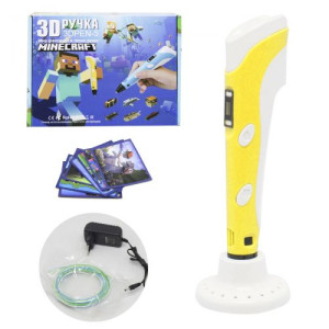 3D-ручка позволяет рисовать объекты в 3D пространстве; создавать фигуры на бумаге (2D), затем, отделяя бумагу от пластика, получать готовуб фигуру, либо одну из деталей фигуры; соединять изделия из пластика между собой. 3D ручка имеет удобный и стильный корпус, который отлично помещается даже в руке у ребенка. Керамический носик делает 3D ручку еще более безопасной и практичной. Рисует пластиком АВS и PLA. Есть регулировка температурі и скорости. В наборе есть карточки с изображениями героев игры 'Майнкрафт', которые можно использовать как трафареты.