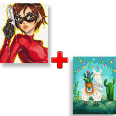 Набор картин по номерам 2 в 1 "Девушка-агент" 40х50 KHO2551 и "Веселая лама" 30х40 KHO5069 В наличии:1шт.Артикулr35599