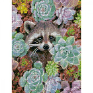 Алмазна картина HX232 Єнотик у квітках розміром 30х40 см