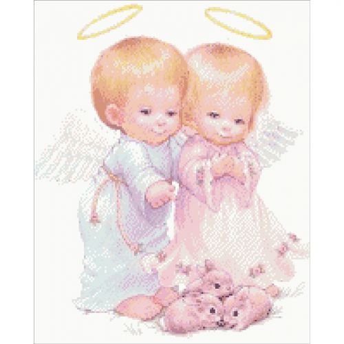 Алмазная мозаика 'Ангелочки'. Выкладка картин алмазной техникой является прекрасным занятием для снятия стресса, медитации и релакса. Готовые картины могут украшать интерьер, а так же будут хорошим подарком. Благодаря эффекту 5D, картины приобретают удивительный, завораживающий объемный вид, который углубляется с помощью огранки каждого камешка. В наборе есть: полотно с клеевым слоем и цветной схеме, которое оформлено на подрамник галерейным способом, акриловые стразы согласно комплектации набора, пинцет для страз, специальная ручка-стилус для работы со стразами, гель-клей, лоток для сортировки страз, инструкция. Форма камней: квадратные. Количество цветов: 24. Размер: 40 х 50 см.