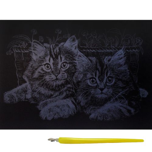 Гравюра А4 економ серебро кошенята