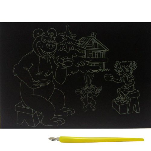 Гравюра А5 економ золото Маша и медведь