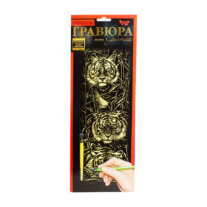Гравюра 'Golden Metallic'. С помощью штихеля можно провести по контуру рисунка линии, постепенно создав изображение. В процессе работы развивается кисть, оттачиваются движения пальцев. В наборе: основа с нанесенным контуром, штихель. Размер готовой работы: 41 х 15 см.