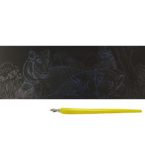 С помощью штихеля необходимо провести по контуру рисунка линии, постепенно создавая изображение. В набор входит: основа с нанесённым контуром, специальный штихель (пластиковая ручка-гравер с металлическим наконечником), инструкция. Размер готовой работы: 410 x 150 мм.