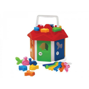 Сортер 'Домик' с дверцами (геометрические фигурки 6 шт., фигурки животных 6 шт., ключи 6 шт.). Каждая дверца соответствует одному ключику (по цвету).