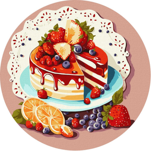 - натуральное полотно на круглом подрамнике с галерейной натяжкой. На картине нанесена схема контуров изображения с нумерацией