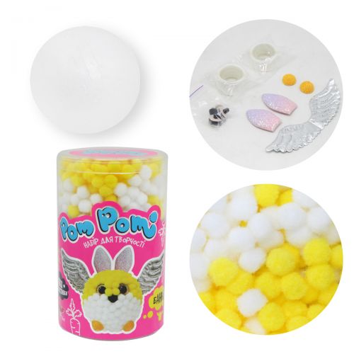 Набор для творчества 'Pom pom'. С помощью такого набора можно создать милого пушистого зверька. В комплекте имеется все для этого необходимое: пенопластовый шар-основа, помпоны 2 цвета, клеевые точки, крылья, глазки, ножки, носик, ушки. Выполнено из качественных и безопасных материалов. Для детей от 3-х лет.