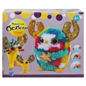 Набор для творчества с помощью которого можно создать милую игрушку. В комплект входит 54 элемента: твердая основа (пластик), клейкая лента, 93 помпона в нескольких цветах, звездочка-декор. Сборка готовой игрушки развивает творческие способности, логическое мышление и мелкую моторику. Набор предназначен для детей от 6-ти лет.