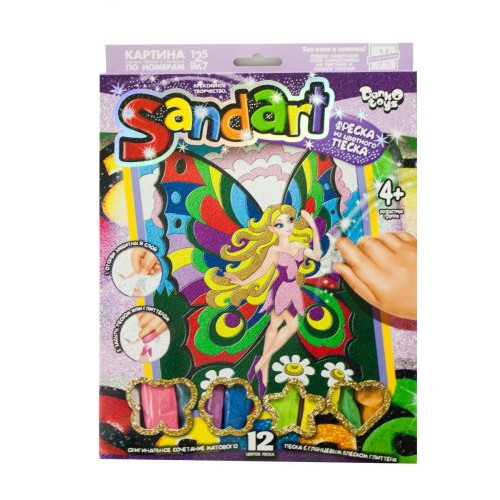 Набор для творчества 'Sandart' фреска из цветного песка. Развивает креативное мышление, творческие способности, художественный вкус. Без ножниц и клея. Инструкция: 1) Отделите с участков, обозначенных одним определенным номером, высеченную защитную пленку; 2) Засыпьте на открытую липкую поверхность песок выбранного цвета. Вы можете украсить картину глиттерными блестками, заменив любой цвет песка на глиттер, на свое усмотрение.