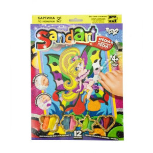 Набор для творчества 'Sandart' фреска из цветного песка. Развивает креативное мышление, творческие способности, художественный вкус. Без ножниц и клея. Инструкция: 1) Отделите с участков, обозначенных одним определенным номером, высеченную защитную пленку; 2) Засыпьте на открытую липкую поверхность песок выбранного цвета. Вы можете украсить картину глиттерными блестками, заменив любой цвет песка на глиттер, на свое усмотрение.