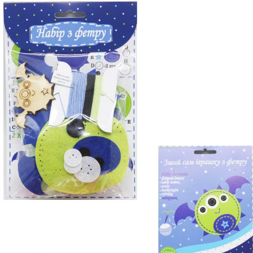 | Комплектация | Фетр, нитки, игла, бусинки для декорирования, инструкция и маленькая деревянная копия монстрика |