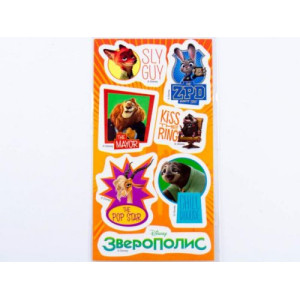 Лист с наклейками в пакете. Наклейки с персонажами известного мультфильма 'Зверополис' для декора тетрадей, альбомов, рисунков и фото, различных поделок.