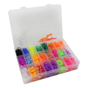 При помощи этого набора можно изготовить: браслет, кольцо, резинку для волос, вообщем, любое украшение, на которое хватит фантазии. В комплекте: cтанок (рогатка), крючок, резиночки разных цветов.