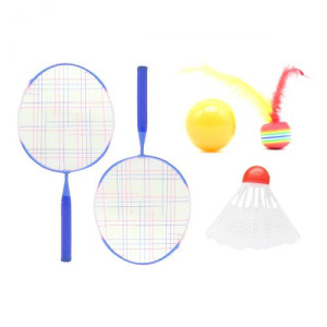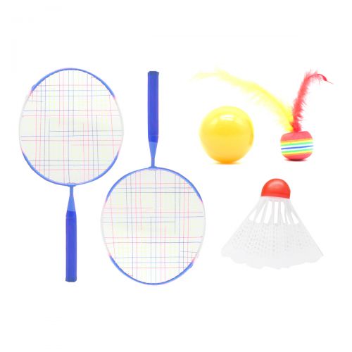 Игровой набор 'Бадминтон'. В комплекте есть: 2 ракетки (42х20 см.), пластиковый мячик (диаметр - 5 см.), 2 воланчика: 1 - с пластиковой каемкой, другой - с пушистым перышком. Материал сетки на ракетках - леска. Упакован набор в сетку.