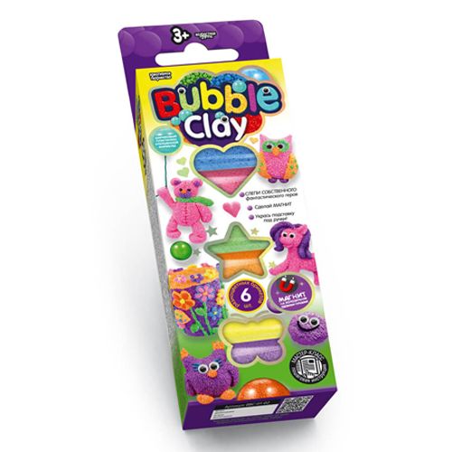 Набор для креативного творчества 'BUBBLE CLAY'. Это шариковы пластилин, улучшеной формулы. Состоит из маленьких пенопластовых шариков скрепленных между собой клеевым раствором. Слепи собственного фантастического героя, сделай магнитик или укрась подставку под ручку.